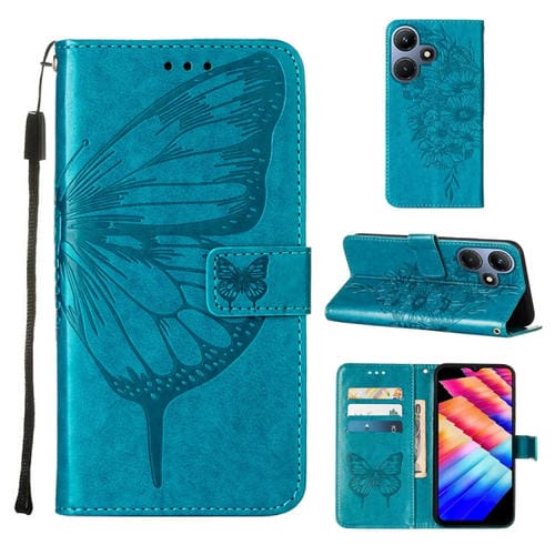Estuche para Teléfono Infinix Hot 30I X669 Cuero Mariposa en Relieve (Azul)