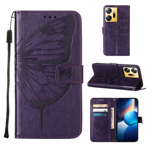 Estuche para Teléfono Infinix Note 30 5G X6711 Cuero Mariposa En Relieve (Púrpura Oscuro)