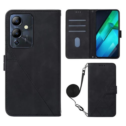 Funda de Cuero con Tapa En Relieve para Infinix Note 12I 2023 y G85 Crossbody (Negro)