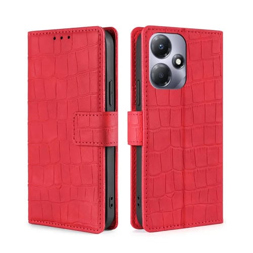 Funda de Cuero Infinix Hot 30 Play 4G Skin Feel Cocodrilo Cierre Magnético (Rojo)