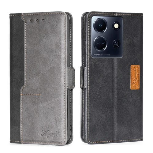 Funda de Cuero para Infinix Note 30 5G con Hebilla Lateral y Contraste (Negro + Gris)