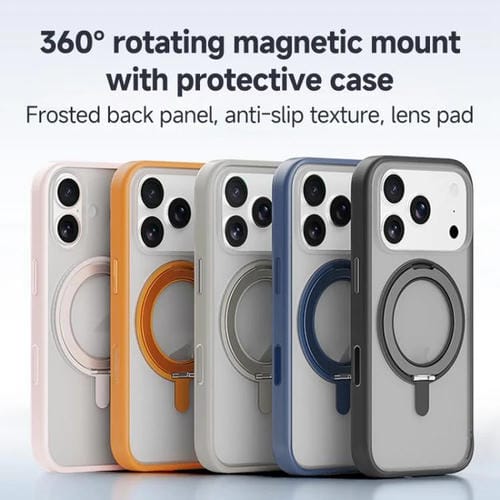 Funda híbrida de TPU y PC Magsafe para iPhone 17 ZGA Feitian con rotación de 360 grados (gris)