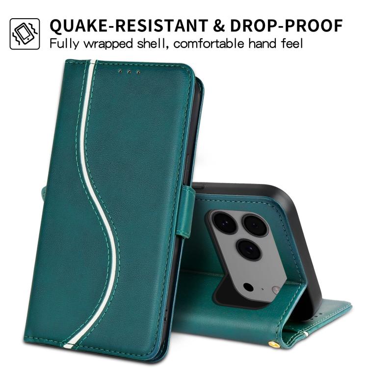 Funda de cuero con hebilla lateral y curva en forma de S para iPhone 17 Pro (verde)