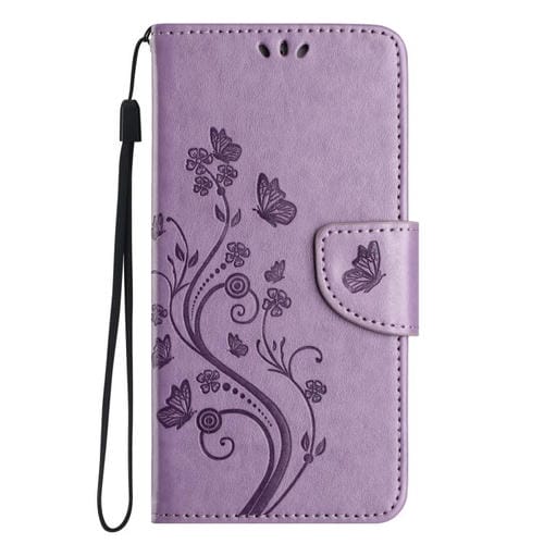 Funda de cuero con tapa y diseño de mariposas y flores para iPhone 17 (morado claro)