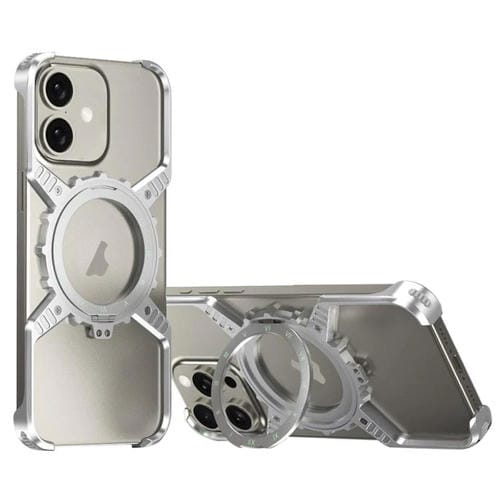 Funda metálica sin bordes con soporte MagSafe para iPhone 17 Mechanical Gear (plateada)
