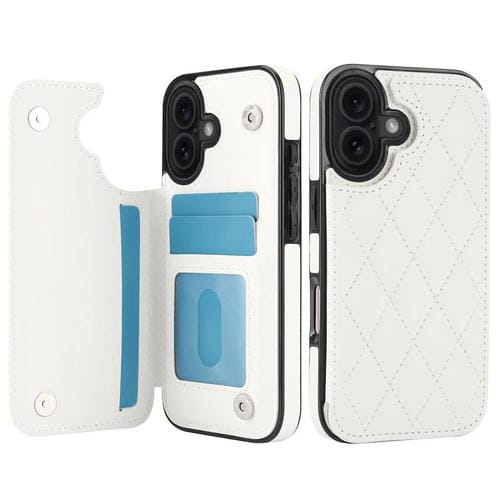 Funda de piel sintética con doble hebilla y diseño rómbico para iPhone 17 (blanca)