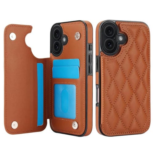 Funda de piel sintética con doble hebilla y diseño rómbico para iPhone 17 (marrón)