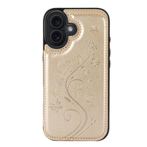 Funda de PU con doble hebilla y estampado de mariposa para iPhone 17 (dorada)