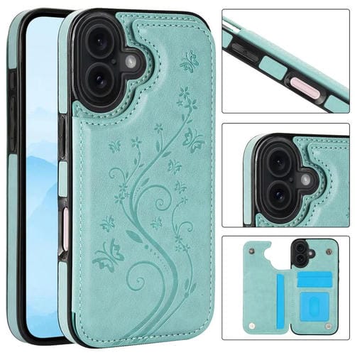 Funda de PU con doble hebilla y estampado de mariposa para iPhone 17 (verde)