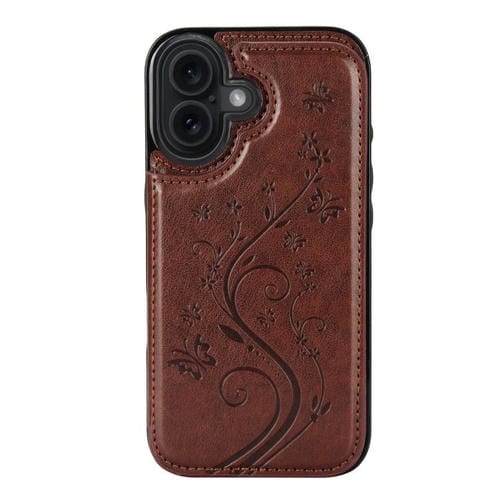 Funda de PU con doble hebilla y estampado de mariposa para iPhone 17 (marrón)
