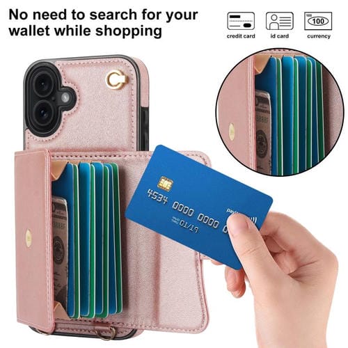 Funda para iPhone 17 con ranura para tarjeta RFID y cordón largo (oro rosa)