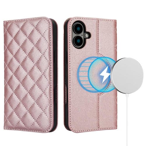 Funda de cuero Rhombic MagSafe RFID antirrobo para iPhone 17 (oro rosa)