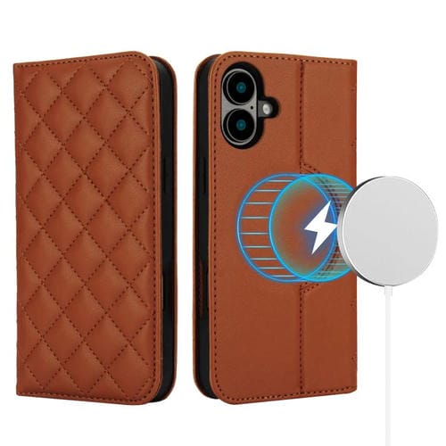 Funda de cuero Rhombic MagSafe RFID antirrobo para iPhone 17 (marrón)