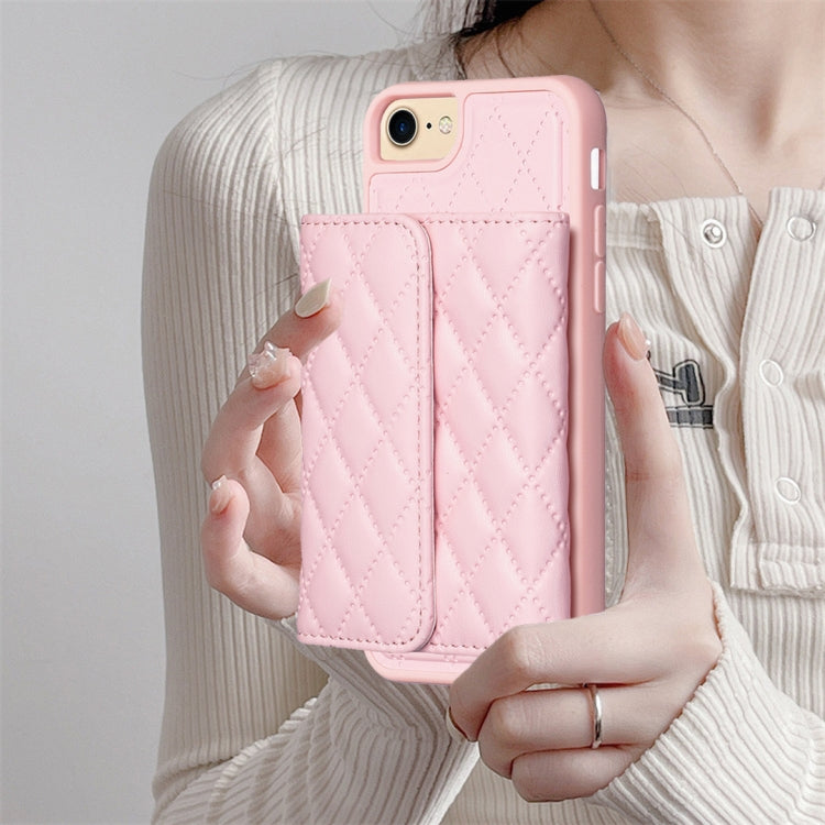 Estuche de teléfono iPhone Se 2022 / Se 2020 / 7 / 8 cuero rómbico con billetera horizontal (Rosa)