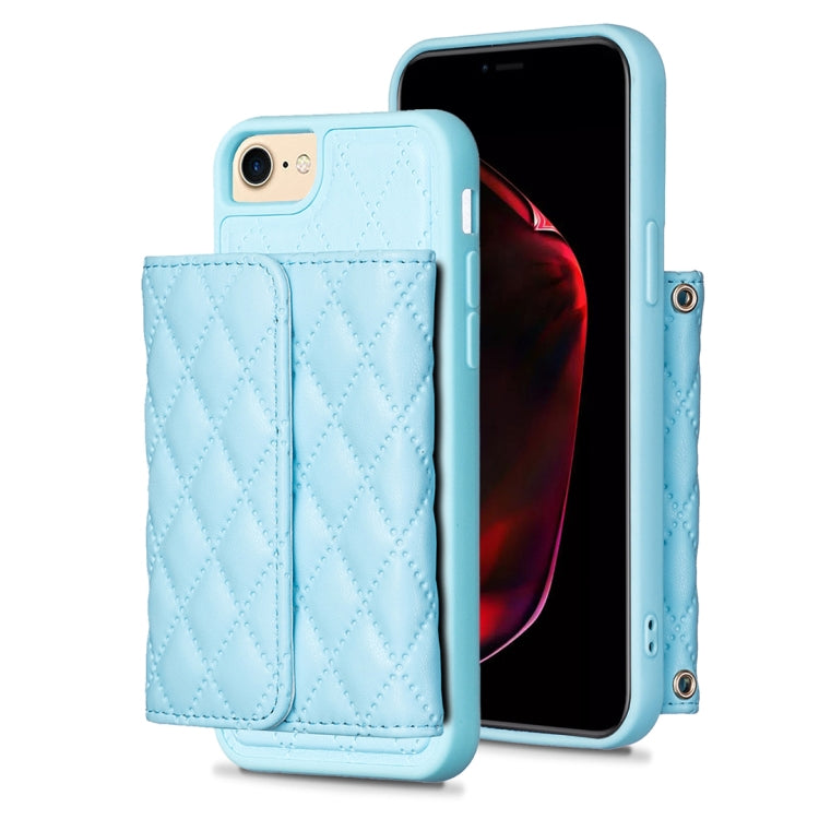 Estuche de teléfono iPhone SE 2022 / SE 2020 / 7 / 8 Cuero Rómbico con Billetera Horizontal (Azul)