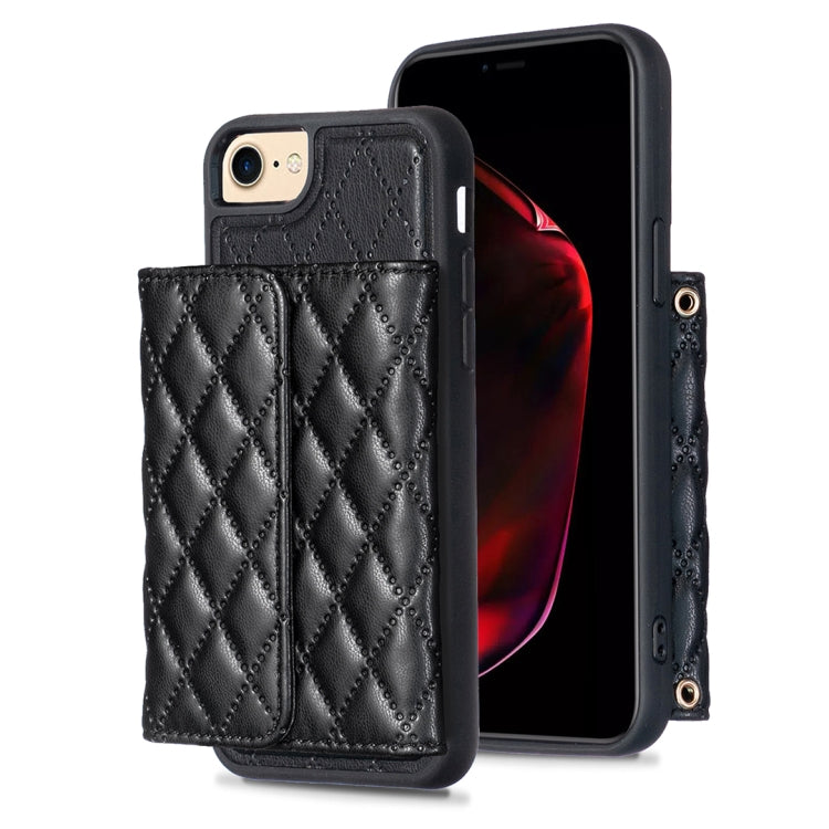 Estuche de teléfono iPhone SE 2022 SE 2020 7 8 Cuero Rómbico con Billetera Vertical (Negro)
