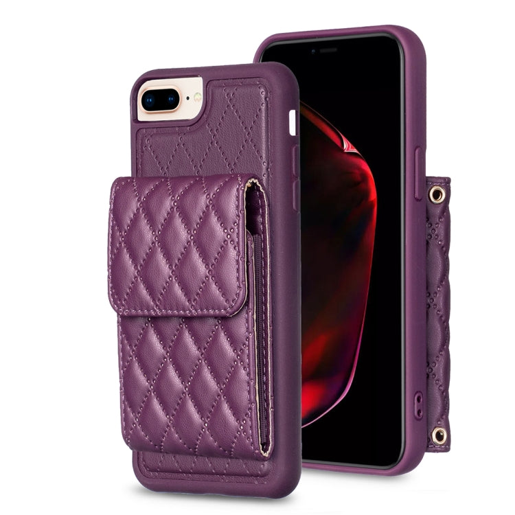 Estuche de teléfono iPhone 7 Plus 8 Plus Cuero Rómbico Hebilla Metal Vertical (Púrpura)