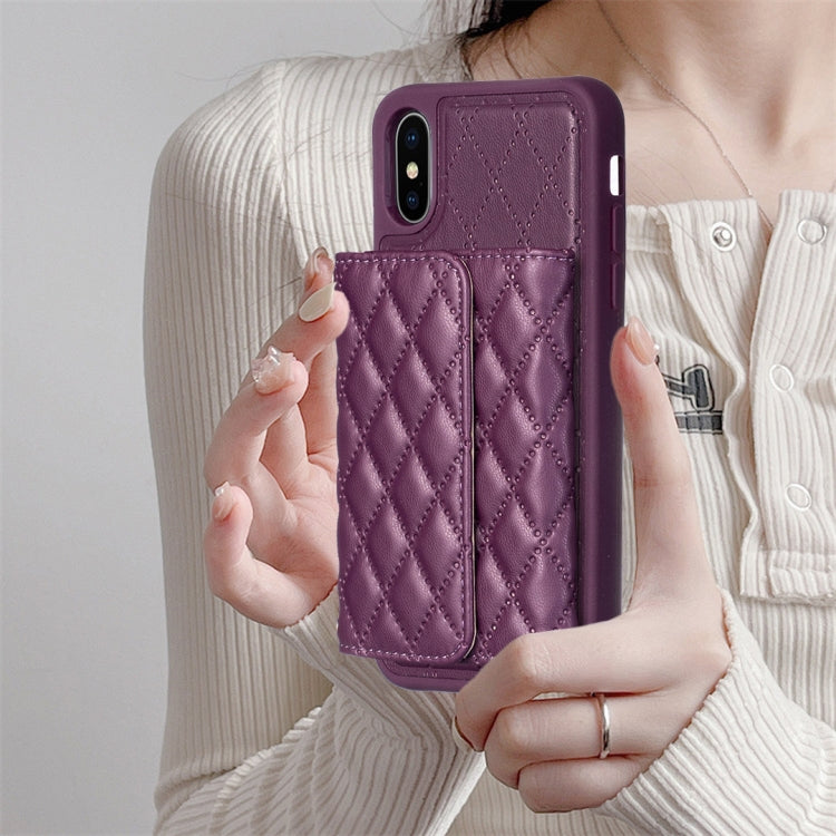 Estuche de teléfono iPhone Xr Cuero Rómbico con Billetera Horizontal (Púrpura)