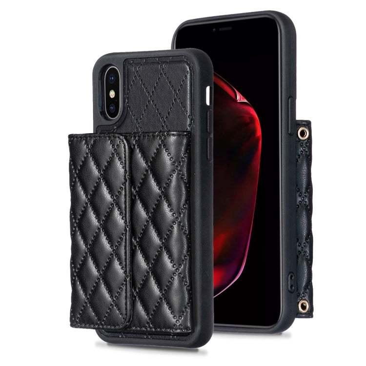 Estuche de teléfono iPhone X Xs Cuero Rómbico con Billetera Horizontal (Negro)
