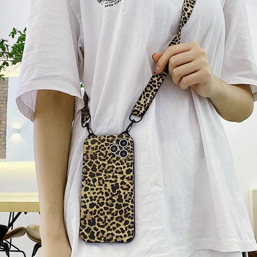 Estuche para iPhone 11 Pro Cat Ear Leopard Print TPU Protector de Borde Recto con Cordón (Marrón)