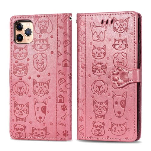 Estuche para iPhone 11 Pro Max Cute Cat And Dog de Cuero PU con Tapa Horizontal En Relieve Rosa