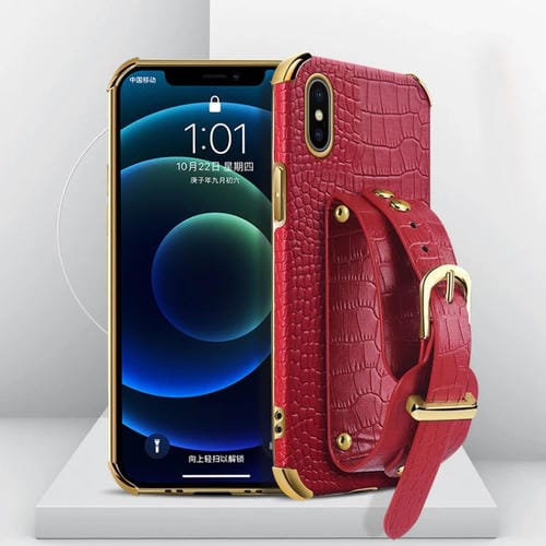 Estuche para iPhone X / Xs Cuero Patrón Cocodrilo TPU Electrochapado Correa Muñeca (Rojo)