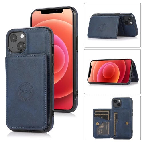Estuche para Tarjeta Magnética Textura de Becerro para iPhone 14 (Azul)