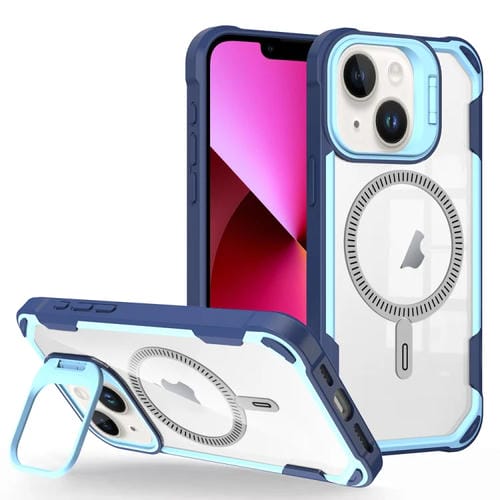 Estuche para Teléfono Acrílico Transparente con Soporte para Lente Magsafe iPhone 13 (Azul)