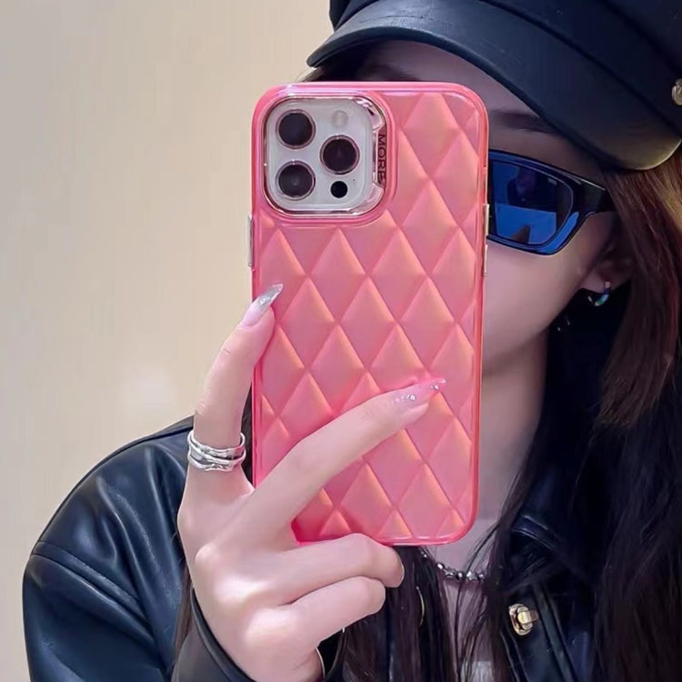 Caja híbrida para teléfono iPhone 12 PC con Galvanoplastia de Rombo 3D TPU (Rojo Rosa)