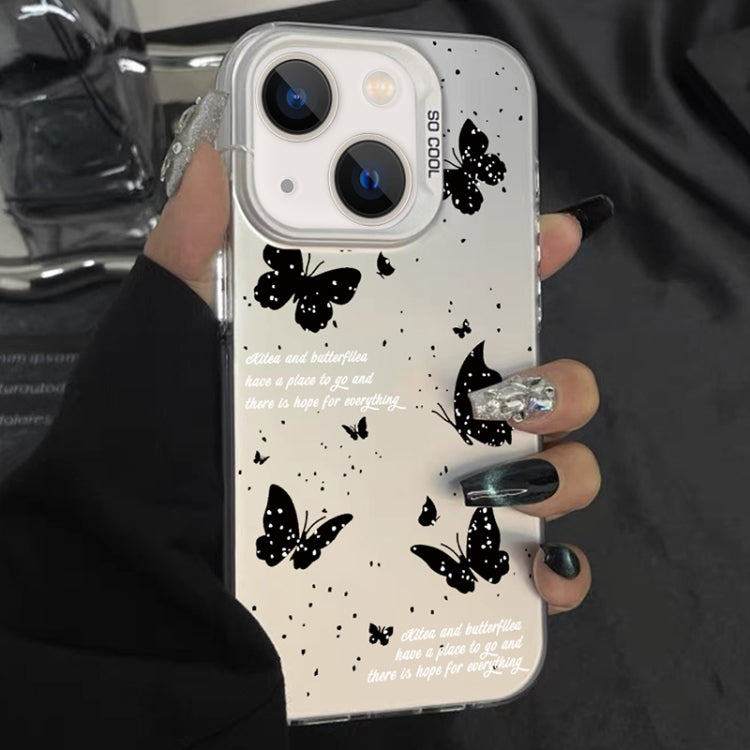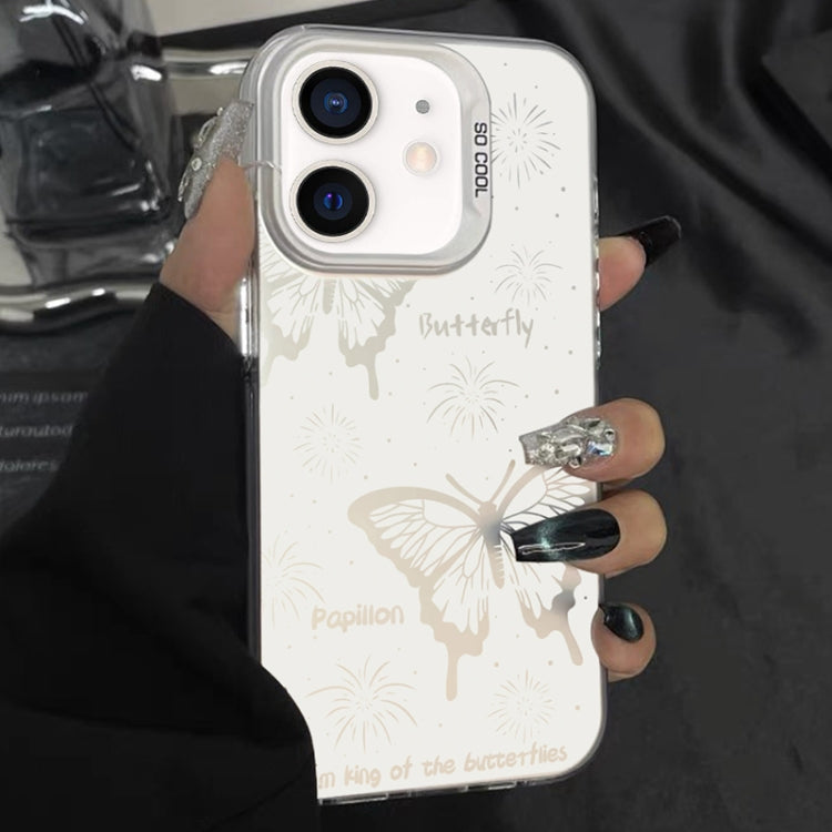 Caja híbrida para iPhone 13 TPU para PC con pintura plateada (Tinta mariposa blanca)