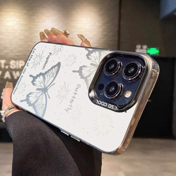 Caja híbrida para iPhone 11 de TPU y PC con pintura plateada (Mariposa Hueca Blanca)