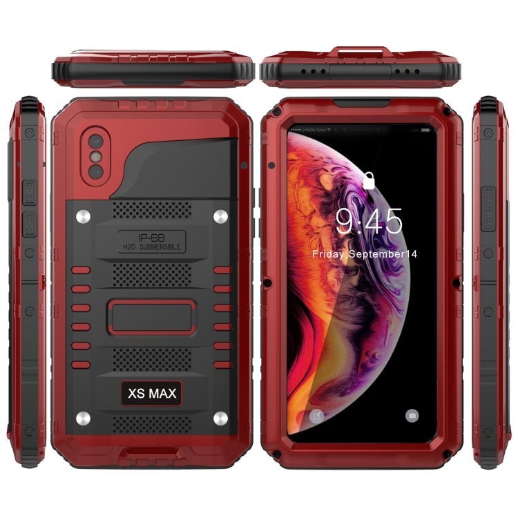 Carcasa Metal para iPhone Xs Max con Funda de Silicona y Protector de Pantalla (Rojo)