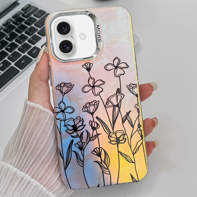 Caja TPU para iPhone 16 Plus con Textura de Flor Láser Galvanizada (Flores Dibujadas Ah3)