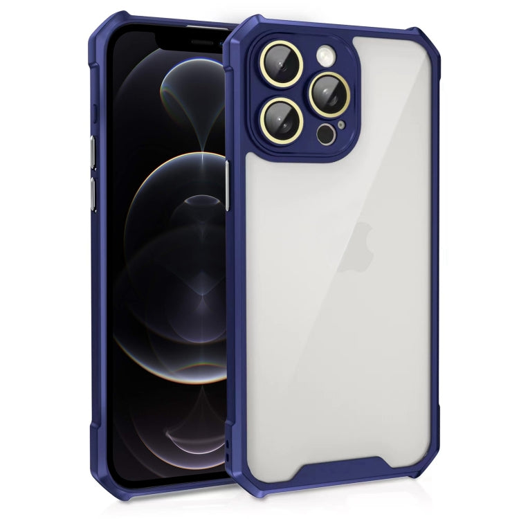 Estuche Acrílico para iPhone 13 Pro a Prueba de Golpes con Película de Vidrio para Lentes (Azul)