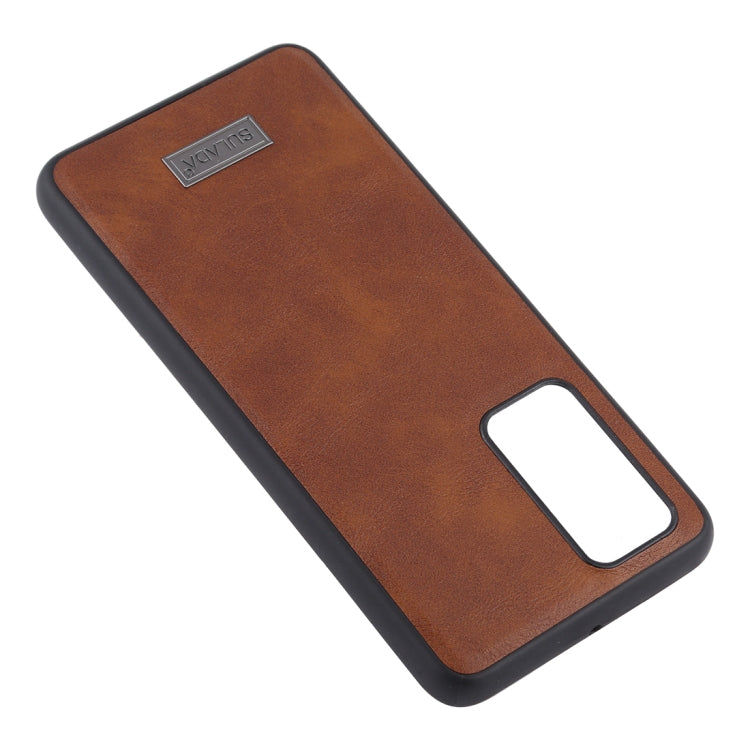 Para Huawei P40 SULADA TPU a prueba de golpes + Funda protectora de cuero hecha a mano (Marrón)