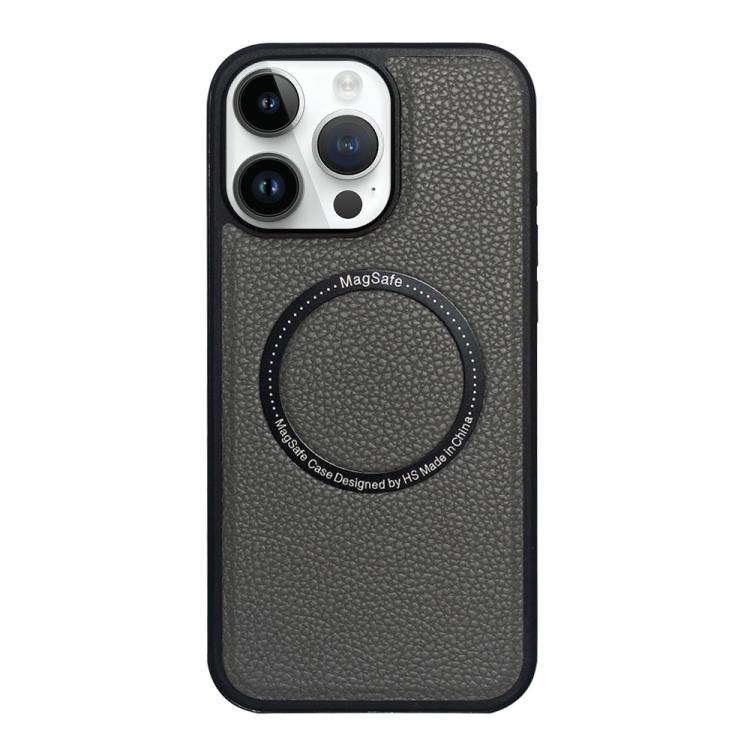 Funda trasera MagSafe de PU con textura de lichi para iPhone 14 Pro Max (gris)