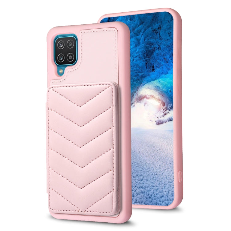 Para Samsung Galaxy A12 BF26 Wave Pattern Card Bag Holder Funda para teléfono (rosa)