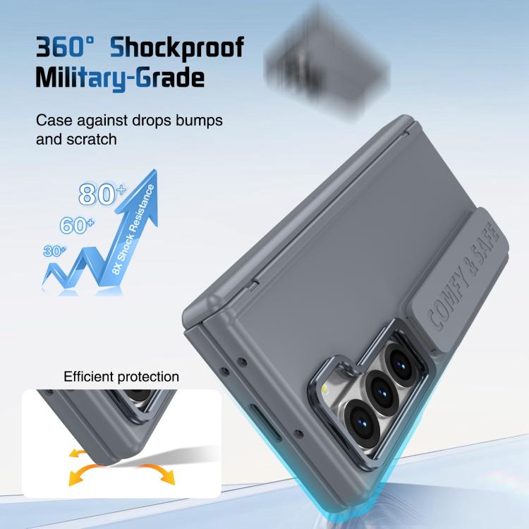 Funda para teléfono con soporte para lente integrada y correa para Samsung Galaxy Z Fold5 (gris)
