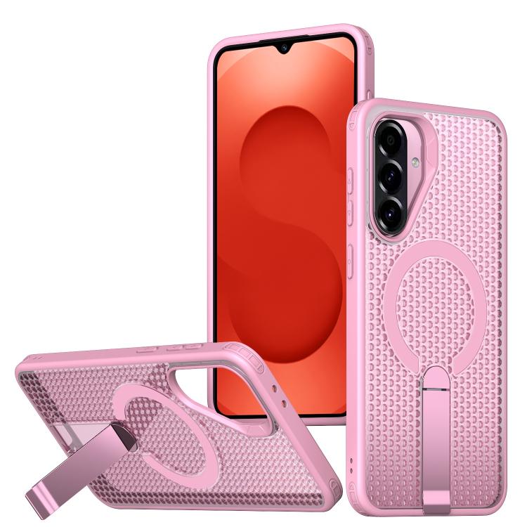 Funda con soporte MagSafe y refrigeración Honeycomb para Samsung Galaxy A26 5G (rosa)