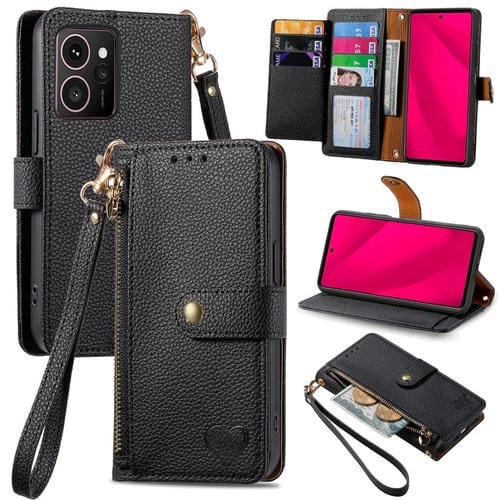 Funda de Cuero para Teléfono HMD Skyline Love con Cordón y Cremallera (Negra)