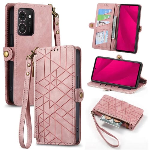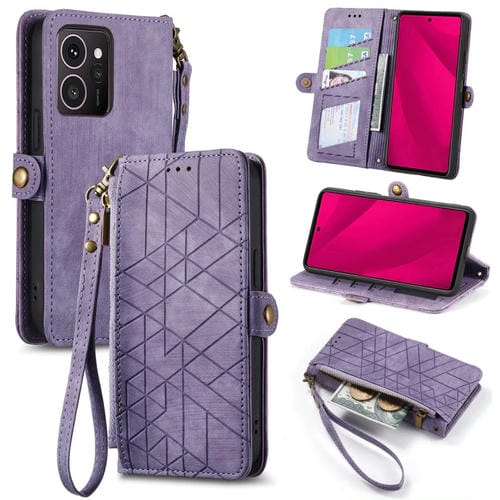 Funda de Cuero para Teléfono HMD Skyline con Hebilla Lateral y Cremallera Geométrica (Morado)