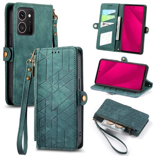 Funda de Cuero para Teléfono HMD Skyline con Hebilla Lateral y Cremallera Geométrica (Verde)