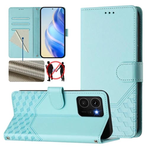 Funda de Cuero Rfid con Relieve en Panal para Teléfono HMD Skyline (Verde Menta)