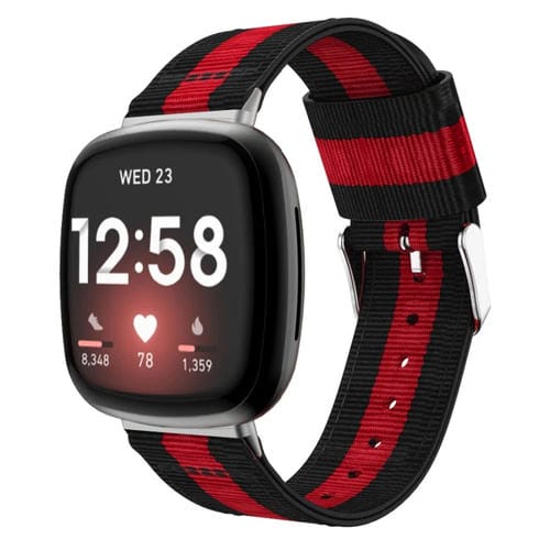Correa Nylon Universal para Fitbit Versa 4 y Sense 2 Stripe (Negro Rojo Negro)