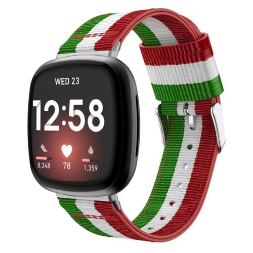 Correa Nylon Universal para Fitbit Versa 4 y Sense 2 Stripe (Rojo Blanco Verde)