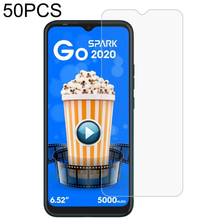 50 PCs Película de Vidrio Templado Tecno Spark Go 2020 0.26mm 9H 2.5D