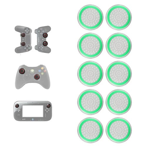 10 PCs Gamepad Silicona Luminous Button Cap Rocker Cap para Ps5 / Ps4 / Ps3 / One / 360 / Pro / Series X / S (Verde Claro Transparente)