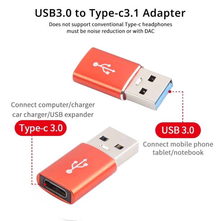 Adaptador USB-C Hembra a USB 3.0 Macho 3 Pcs Aleación de Aluminio (Rojo) Carga y Datos