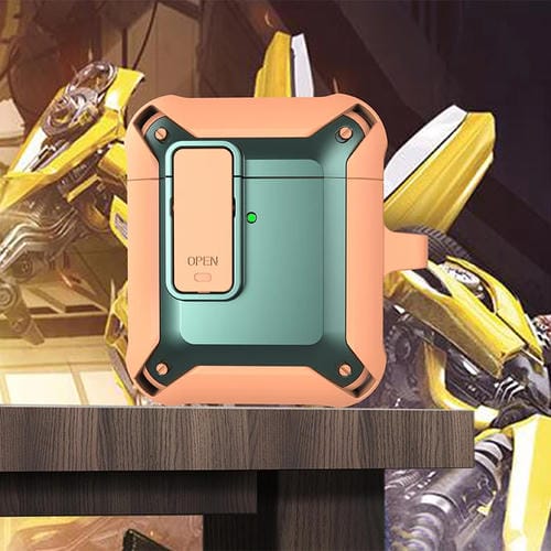 Auriculares inalámbricos funda protectora silicona a prueba de golpes con interruptor para AirPods 1/2 (Verde Naranja)