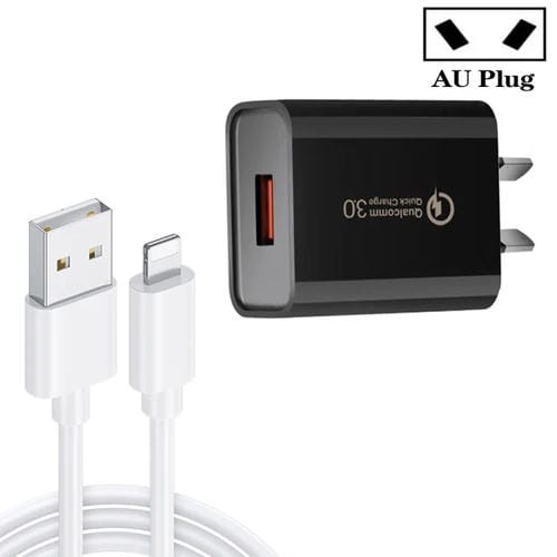 Cargador Rápido Ca-25 Qc3.0 Usb 3A con Cable de Datos Usb A 8 Pin (Negro)